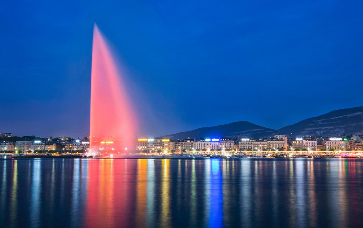 Đài phun nước đẹp nhất vào ban đêm, khi được chiếu sáng bởi 12 ngọn đèn màu, tạo nên một vẻ đẹp kỳ bí. Thưởng thức món fondue truyền thống tại một trong nhiều nhà hàng dọc bờ hồ và ngắm cảnh bầu trời đêm với hàng triệu giọt nước lấp lánh trong ánh đèn.