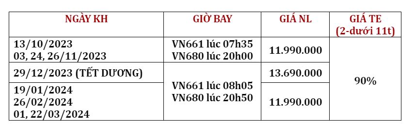 Ngày khởi hành : 01, 22/03/2024