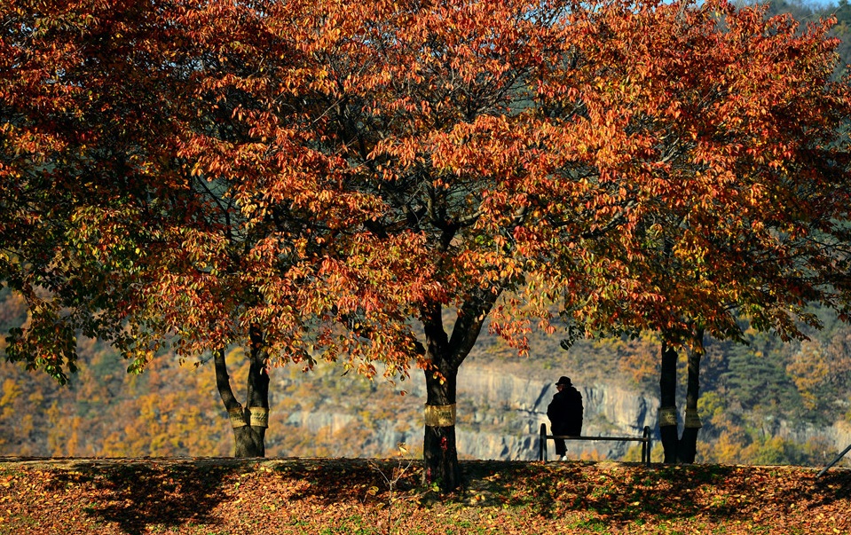 Lá phong đỏ rực, còn ngân hạnh vàng tươi. Trên các triền núi ở ngoại ô cũng rực rỡ hai màu này khiến cho nhiều khu vực như một bức tranh đẹp đến mê đắm lòng người.