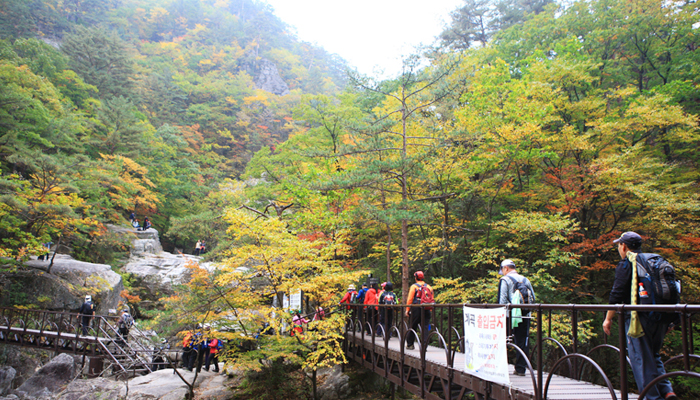 Thời điểm đẹp nhất để tham quan công viên quốc gia núi Seoraksan là khoảng thời gian từ cuối tháng 9, đến đầu tháng 10. Để tới được Seoraksan, bạn chỉ mất chừng 4 tiếng chạy xe từ thủ đô Seoul. Tới đây, bạn có thể tham quan mọi nơi bằng cáp treo hiện đại.