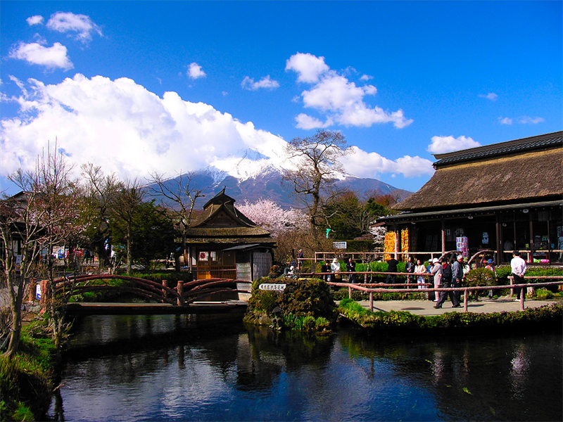 Ngôi làng cổ OSHINO HAKKAI: Oshino Hakkai thanh bình nằm trong khu vực Ngũ Hồ xung quanh núi Phú Sĩ. Thăm làng cổ Oshino Hakkai, du khách thư thả dạo bộ trên con đường đất nhỏ ngoằn nghèo ken dày các bức tường tạo bởi những bụi thông xanh thẫm và luống hoa đủ màu sắc. Bất ngờ một khung cảnh đẹp như tranh vẽ hiện ra phía cuối đường: một hồ nước màu xanh ngọc bích ẩn hiện giữa vành cỏ xanh mướt, phía xa xa là bóng cây cổ thụ xòe tán rộng soi mình xuống hồ nước tĩnh lặng. Điểm thu hút khách nhất của ngôi làng này chính là vẫn giữ được nét cổ kính của nơi đây và bản sắc văn hóa của người Nhật xưa.