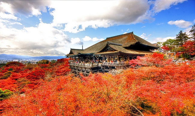 Mùa thu, Kiyomizu khoác lên mình chiếc áo dệt bằng hàng ngàn cây phong, màu đỏ rực rỡ đẹp lạ lùng.