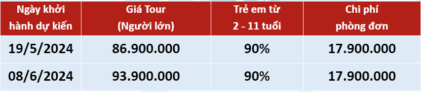 Khởi hành từ : Hà Nội (Thủ Đô)