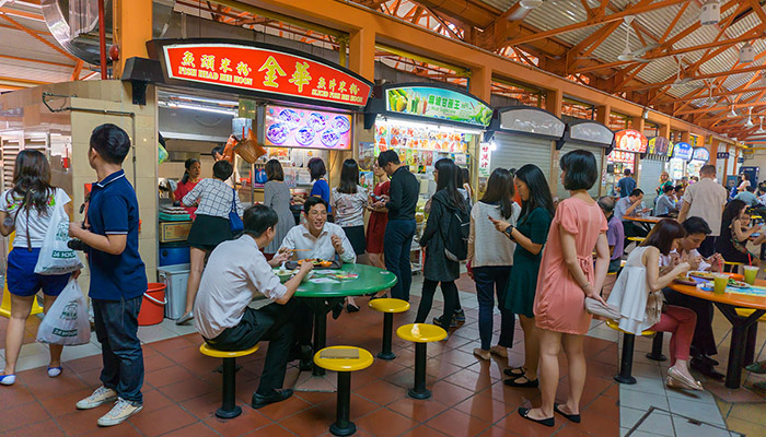 Bạn sẽ được cảm nhận một trải nghiệm ăn uống đậm chất Singapore bằng cách thưởng thức bữa ăn tại một trung tâm ẩm thực. Tọa lạc ngay tại trung tâm Khu Chinatown, Maxwell Road Hawker Centre có hơn 100 quầy hàng tạo nên một trong những bộ sưu tập đa dạng các món ăn địa phương lớn nhất ở Singapore. Du khách sẽ bị choáng ngợp và có chút lúng túng khi phải chọn lựa trước rất nhiều quầy hàng cùng với thực đơn đa dạng và hấp dẫn.